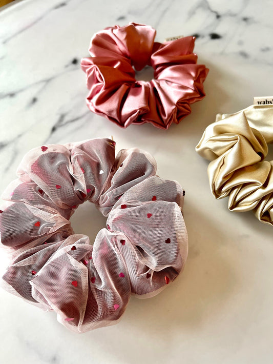 Satin Scrunchies Heart Set | Limited Edition Double Filled Scrunchie