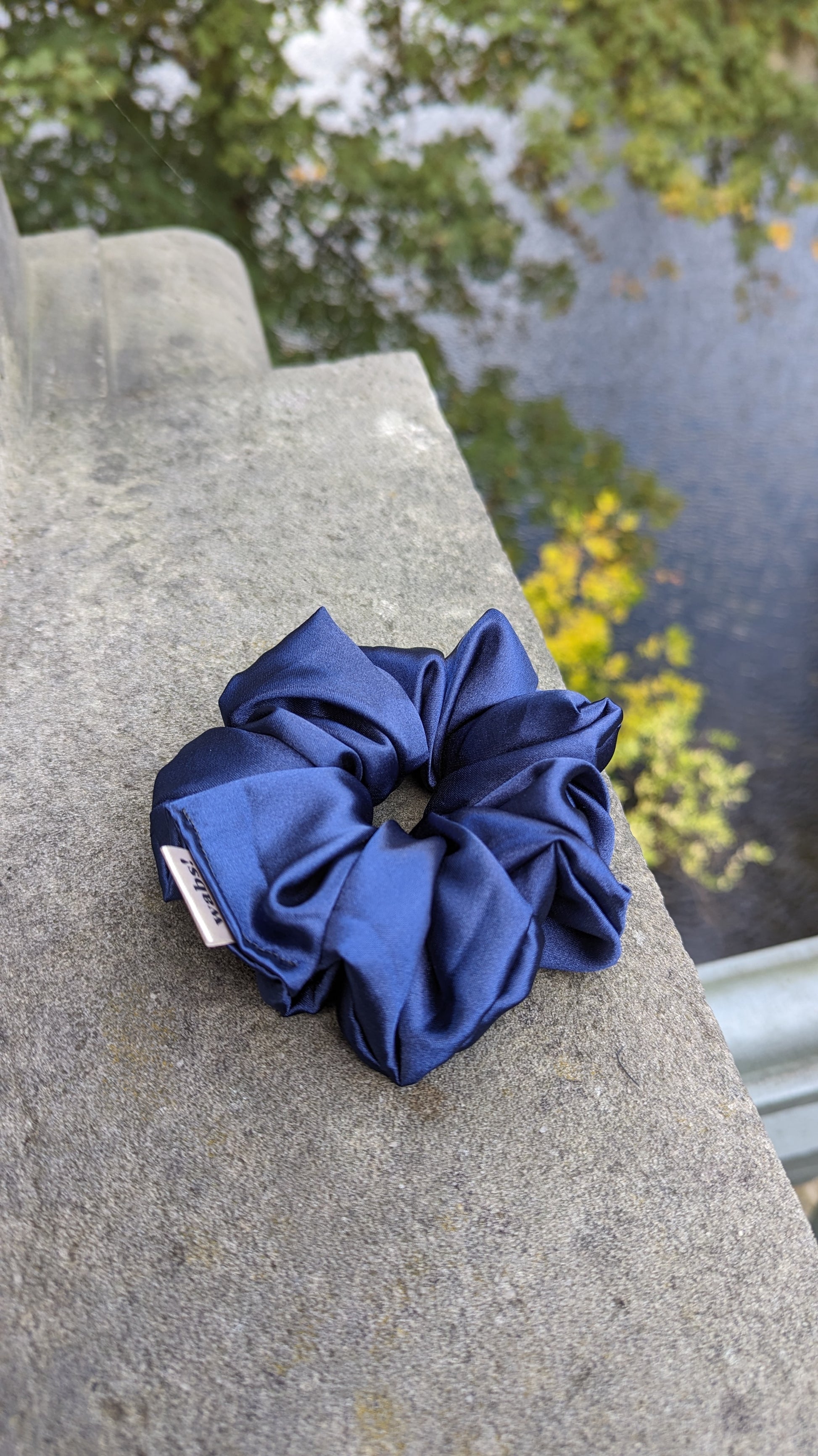 Wir haben lange gesucht und endlich gefunden! Dieser dunkelblaue Scrunchie hat uns gefehlt und vervollständigt auch deine Kollektion endlich. Navy-Blau mit einem Hauch violett schimmert dieser Scrunchie in jedem messy bun.